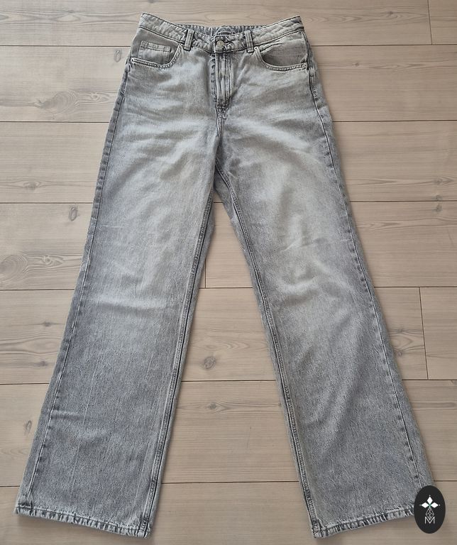 Dydis 29, M dydis, juosmens 76-78 cm, klubai iki 106 cm. Iš esmės nenaudotos, tik tikrinamos. Su stilingais, minimaliais plyšimo efektais prie kišenių ir kelnių apačios. Audinio spalvai lengvas nusidėvėjimo efektas...