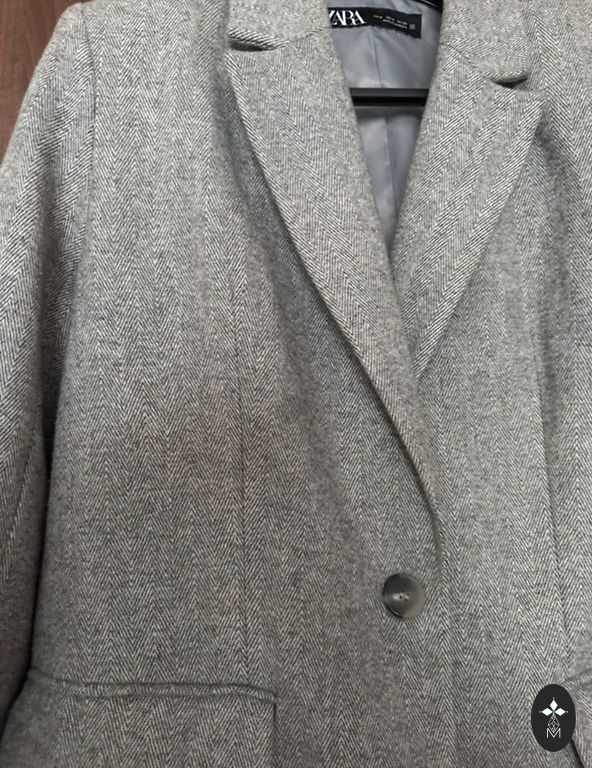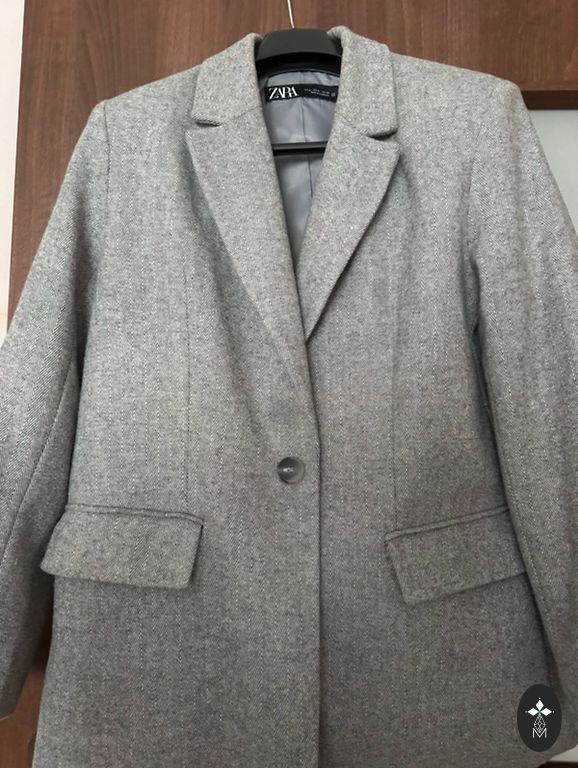 Gara tvīda žakate brūnā krāsā. Garums 140cm, ar ļoti feinu rakstu, ērta un nedaudz oversized, ļoti stilīgi izskatās ar biker šortiem. Izcilā stāvoklī! Žaketei priekšā ir arī kabatas. Derēs s/m un mazākam L izmēram.