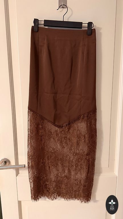 Satin skirt in chocolate tone.