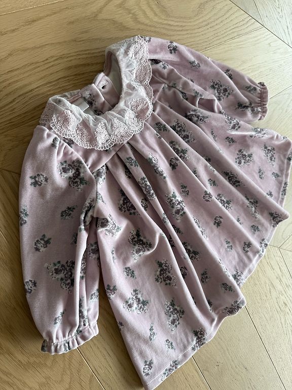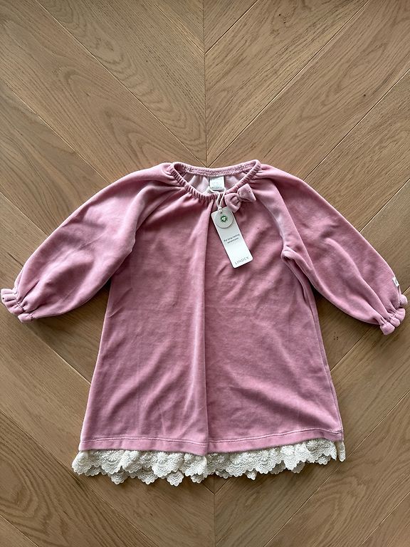 Väga õhuline, ülev, õrn ja luksuslik satiinist kleit väikesele printsessile. Kleit on pikk, voodriga, ülaosa on õmmeldud elastse paelaga, venib. Suurus 120 cm, kuid sobib veel mitmele suurusele. Uus! Samuti on saadaval sinises värvis.