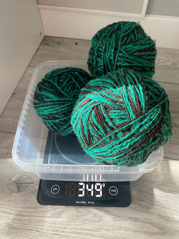 Kokku 500 grammi mõlemat värvi. 400 grammi halli ja 100 grammi rohelist. Alustasin islandi stiilis kampsuni kudumist, kuid siis muutsin meelt ja kudusin selle lahti. Keris on veel 200 grammi jäänud. Roheline on ilus tumeroheline.