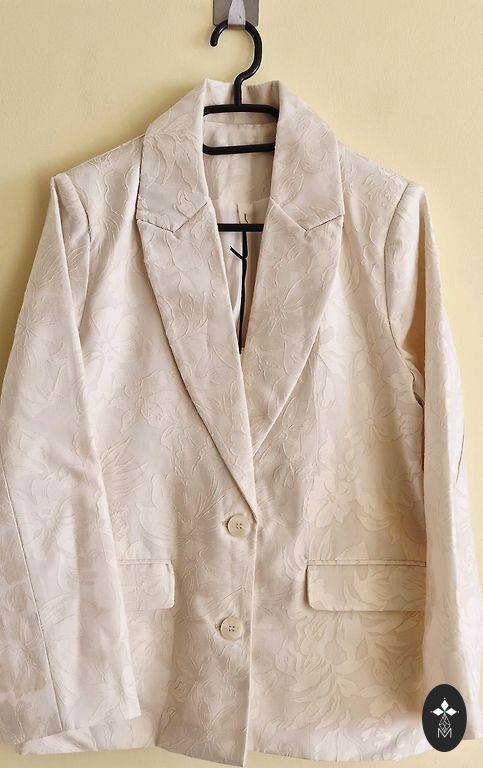 Švarkas neužsisega. Kišenės su užtrauktukais. Švarkas pailgintas.
