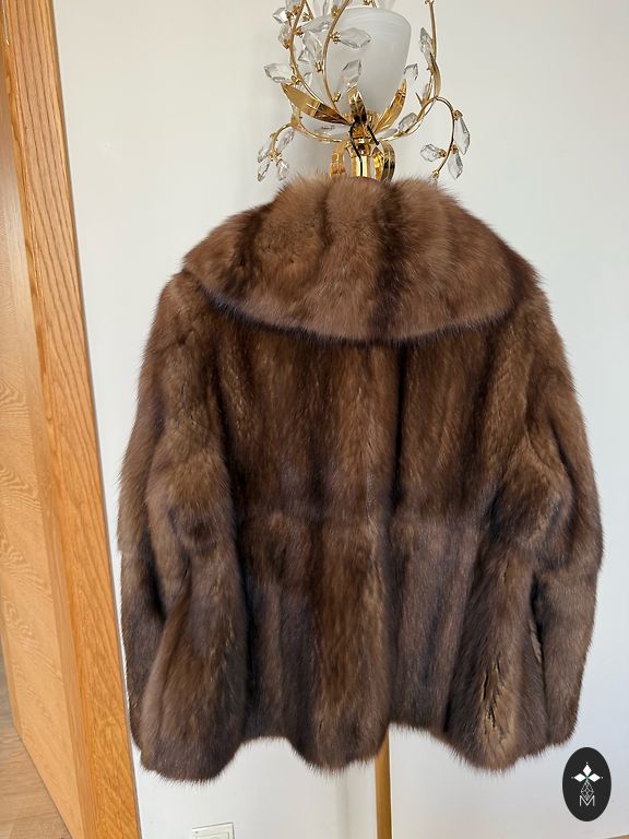 Īpaši mīksta garspalvaina kazāda šokolādes krāsā, itāļu brends ElenaMiro. Bez oderes, tā ir mīksta ādiņa vienā pusē un garā spalva iekšpusē. Nelielas valkāšanas pazīmes ir tikai jostai. L izmērs.