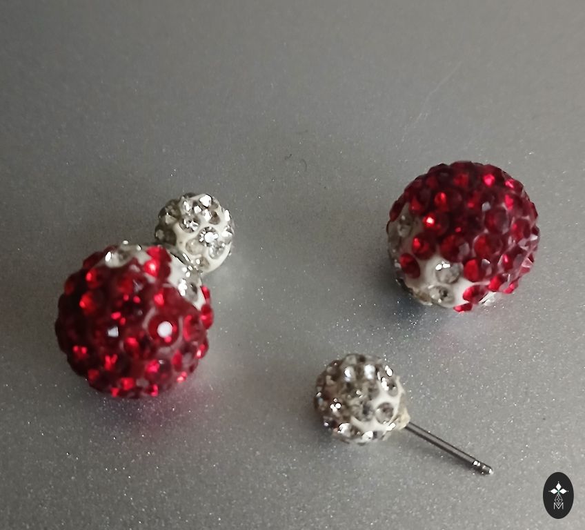 A beautiful red brooch made of red and black crystals. Worn once to an event - almost like new. Width 6 cm, length 5 cm. Weight 13.8 g. + shipping costs.