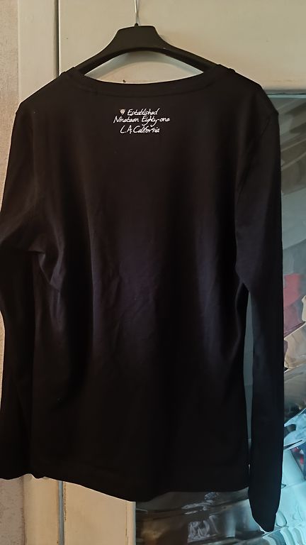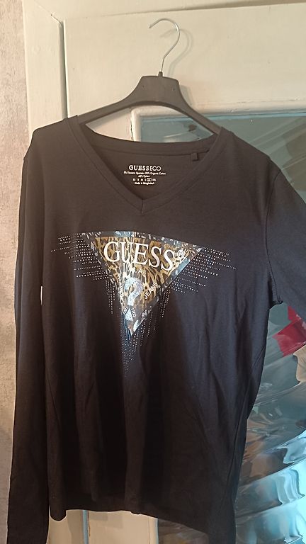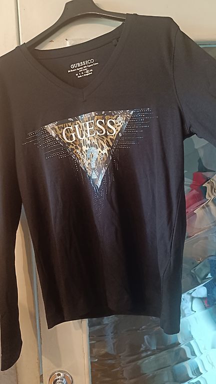 Tumša skaista sarkanraiba blūze ar garām dekoratīvām piedurknēm. Uzvilkta 1 reizi, tomēr par platu pašai.Garums 63 cm, platums 66 cm. Sūtīšana nav iekļauta.