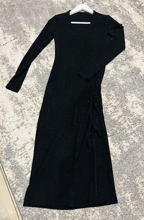 Viskozes auduma, brīvi krītoša kleita. Norādīts itāļu 40.izmers, derēs Xs/s izmēram. Pilnībā jauna.