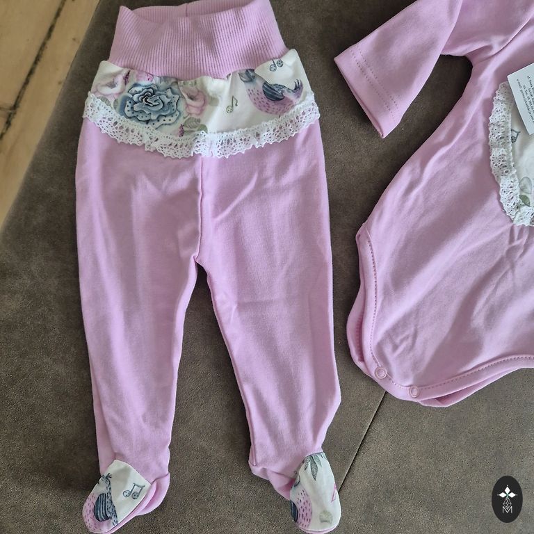 Originaals, suurepärane kvaliteet. Suurus märgitud 18 kuud või 76-81 cm. Komplektis - lühikeste varrukatega bodid (roosa värviga) + pikkade varrukatega bodid (sinine värv lilledega) + püksid.