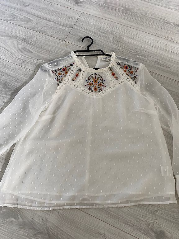 Krekliņam ir pleķīši, nav zināma izcelsme un nav nests tīrīt. Varu dot atlaidi tīrīšanai.