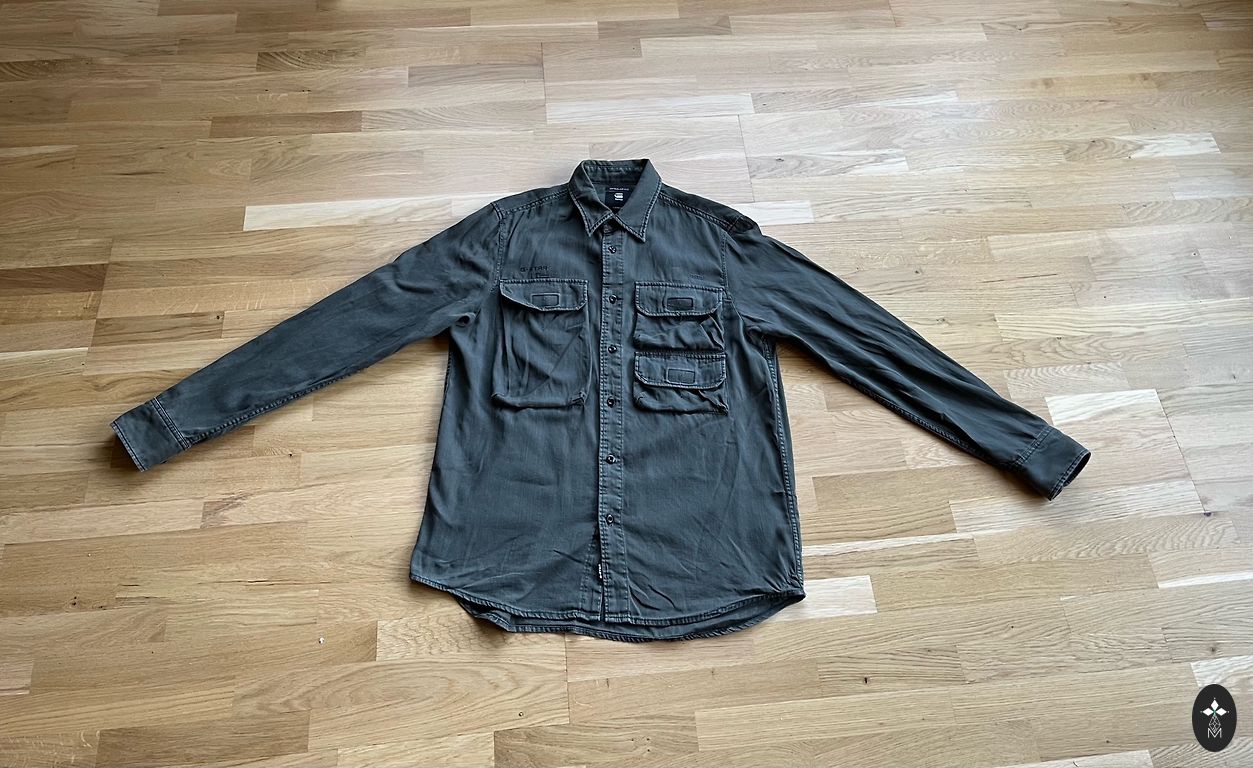 Labas kvalitātes. Divas uzšūtas kabatas ar atloku uz pogām. Atlasa ielaidumi un siksnas sānos. Lente virs kabatas un uz muguras. Izšūts logotips virs kabatas. Apkakles apkārtmērs - 39,5 cm. Garums pa muguru - 76 cm. 1/2 krūšu apkārtmērs - 53 cm. (no paduses līdz padusei). Piedurknes garums - 64 cm (ar plecu 80 cm).