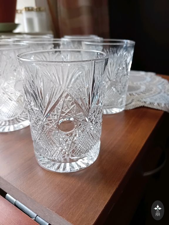 Vintage kristāla glāze tilpums 190 ml, augstums 14,5 cm. Ļoti dzidra skaņa. Labā stāvoklī (daži mini skrāpējumi ). Pakomāts +2,30 eur