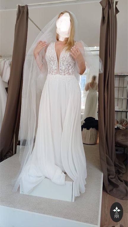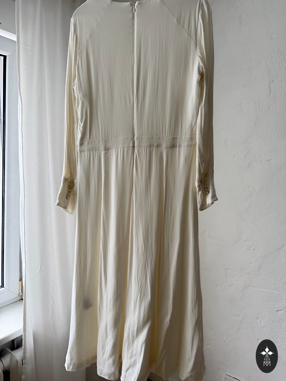 Aukštos kokybės, puikus audinys, be defektų. Įsikūręs Ķengaragse. Suknelė tinka 167-175 cm ūgio ir 38-40-42 ES dydžių moterims, dėl kitų dydžių teiraukitės. Galiu atsiųsti vaizdo įrašą telefonu. Kaina salone yra 1150 eurų minus 20 %.