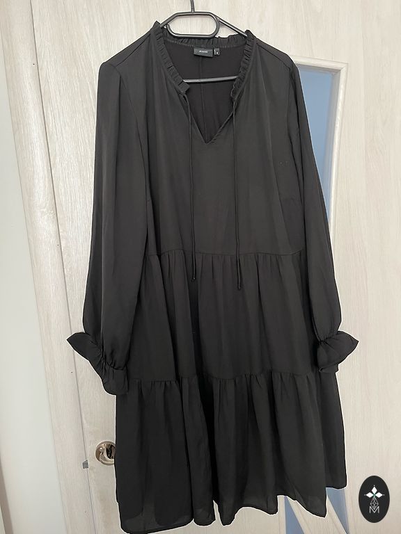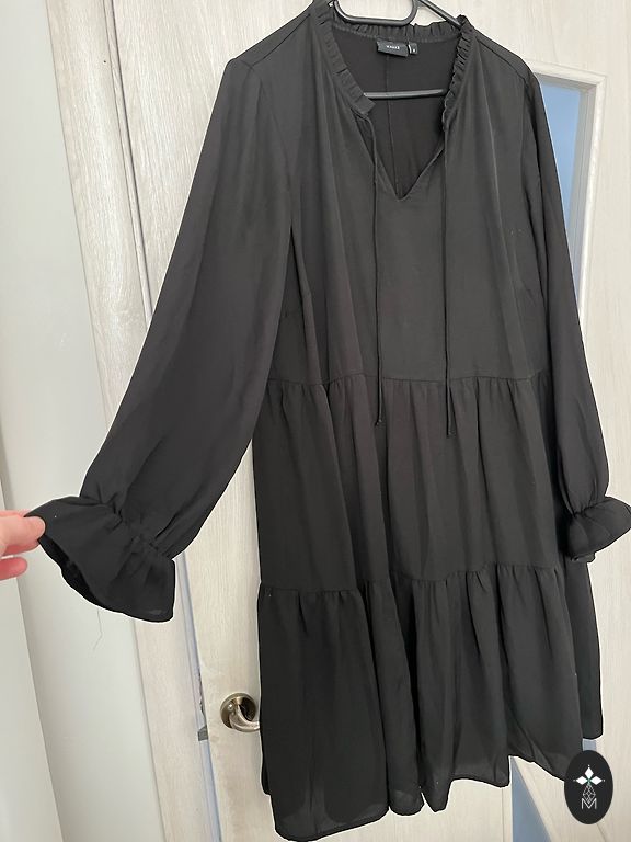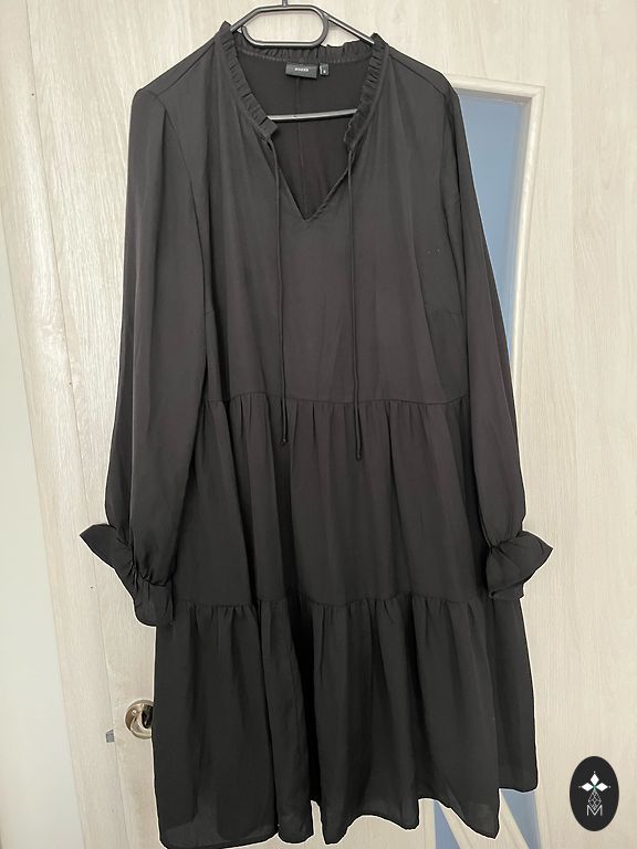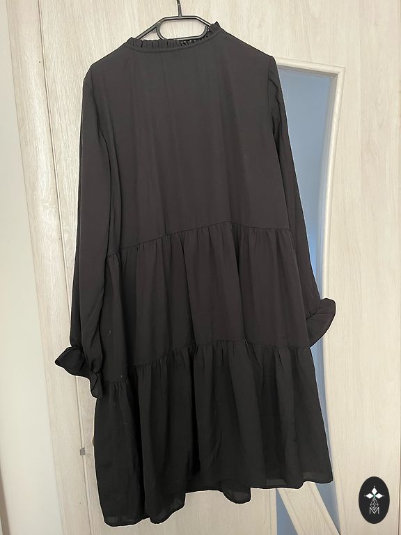 A very beautiful, loose-fitting dress, length 120 cm, bust width 116 cm, does not cling to the body, multi-layered at the front, can be tied to create a different style if desired, can be worn with a belt.
