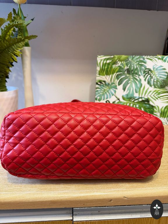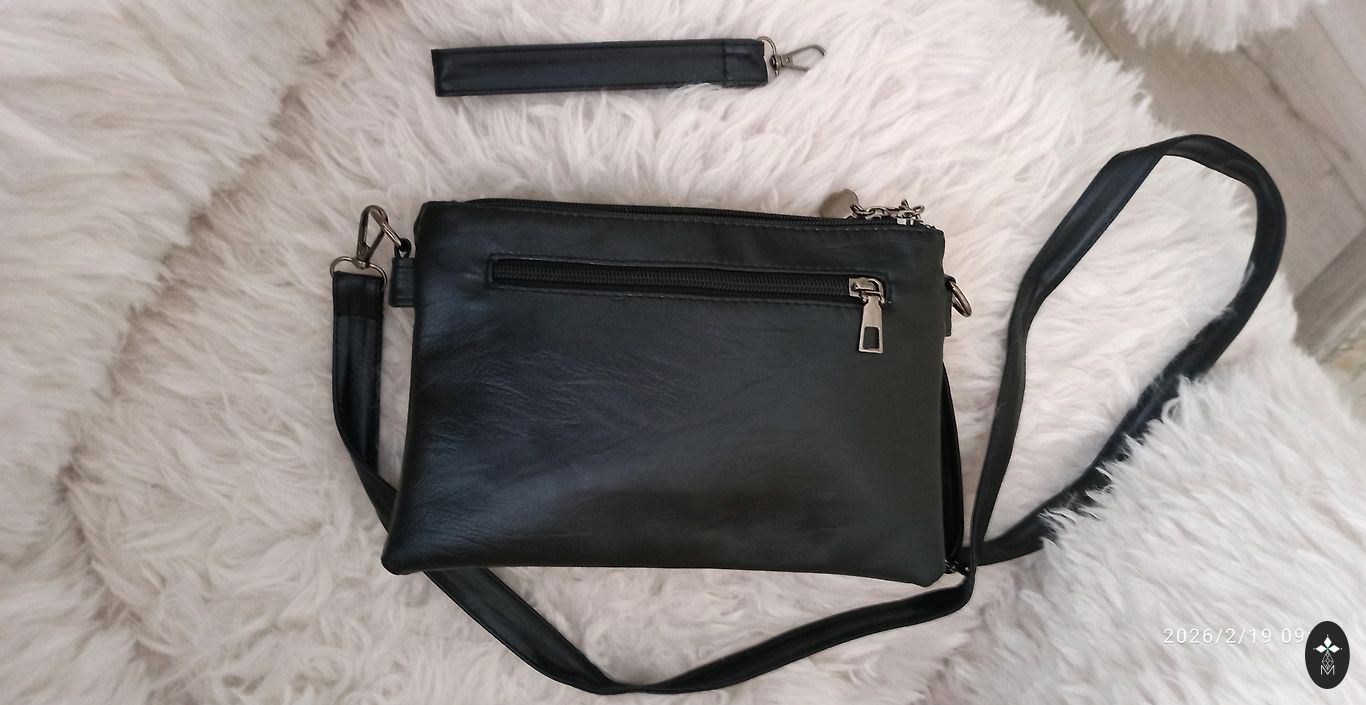 Вместительная. Винного цвета. Можно положить телефон, небольшой кошелек, ключи, зеркало и другие мелочи.