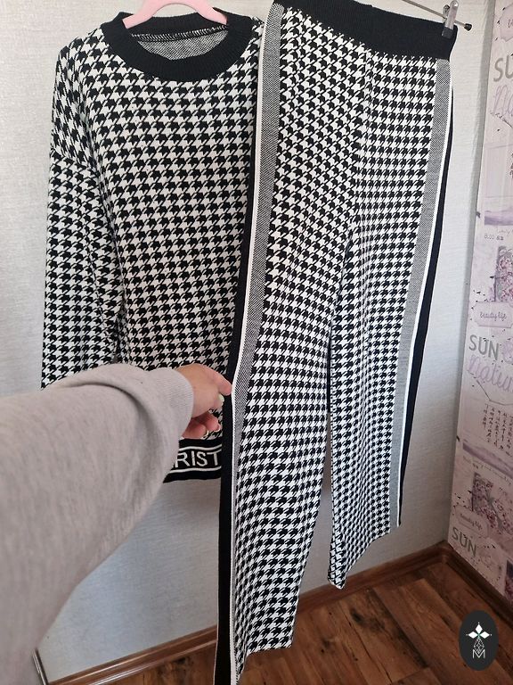Made in China. Chest circumference 124 cm, length 55 cm. Pants length 93 cm, waist 86 cm (elastic).