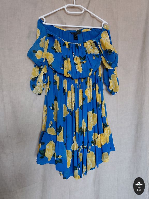 Pirkta Spānijā, man tomēr prasās garāku. One Size, bet labāk S/M. Viduklis, augša un piedurknes uz gumijas. Var nēsāt gan uz pleciem, gan ar nolaistiem.