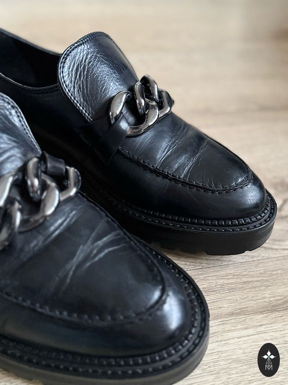 Ir vairāki skrāpējumi, no zeltas furnituras krāsa ir nedaudz nolobījies