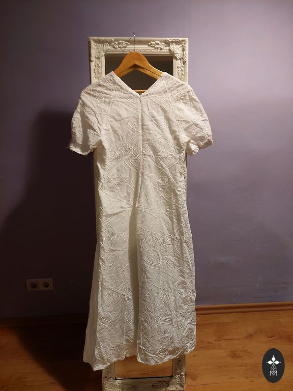 Puikus pasirinkimas vasaros šventėms ir ne tik! Vasaros būtinybė!🌞 Suknelė buvo dėvėta vieną valandą oficialiosios renginio dalies metu. Nauja, be dėvėjimo požymių. Gražus siuvinėtasis medvilnės audinys.