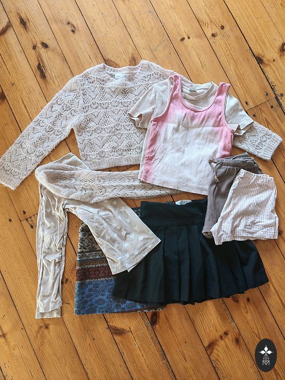 A practical set for a first grader's everyday wear. The set includes two shirts and pants; the smock and jacket are not included in this price. Everything is worn, but relatively little, because we had a lot of shirts and pants were not our favorite choice. No holes or stains! Shirts are 100% cotton. Pants are custom-made. Pants are adjustable at the waist and can be lengthened if necessary. Shipping costs are covered by the buyer according to the price list.