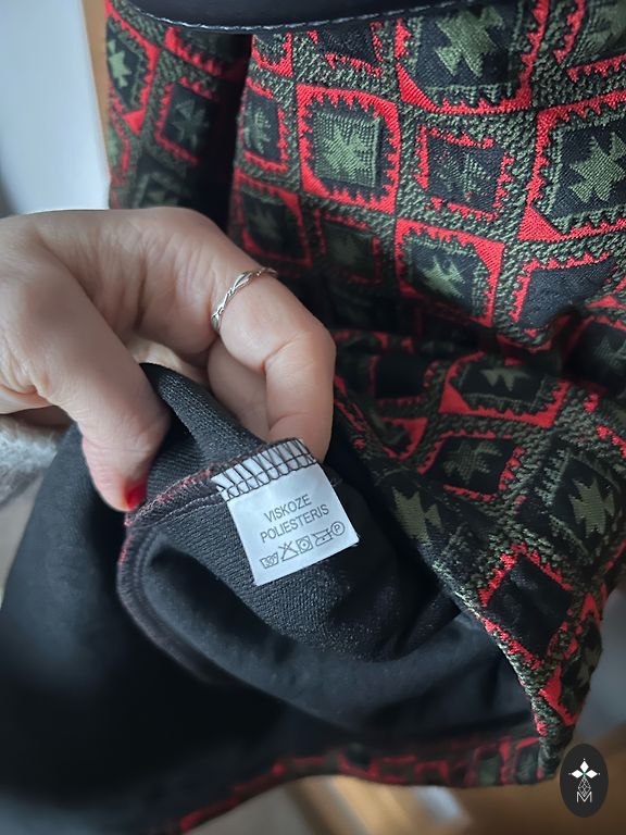100 % viskozė – lengvas, elastingas ir nesiglamžantis audinys, malonus liesti. Elastingas juosmuo, bendras ilgis 102 cm.
