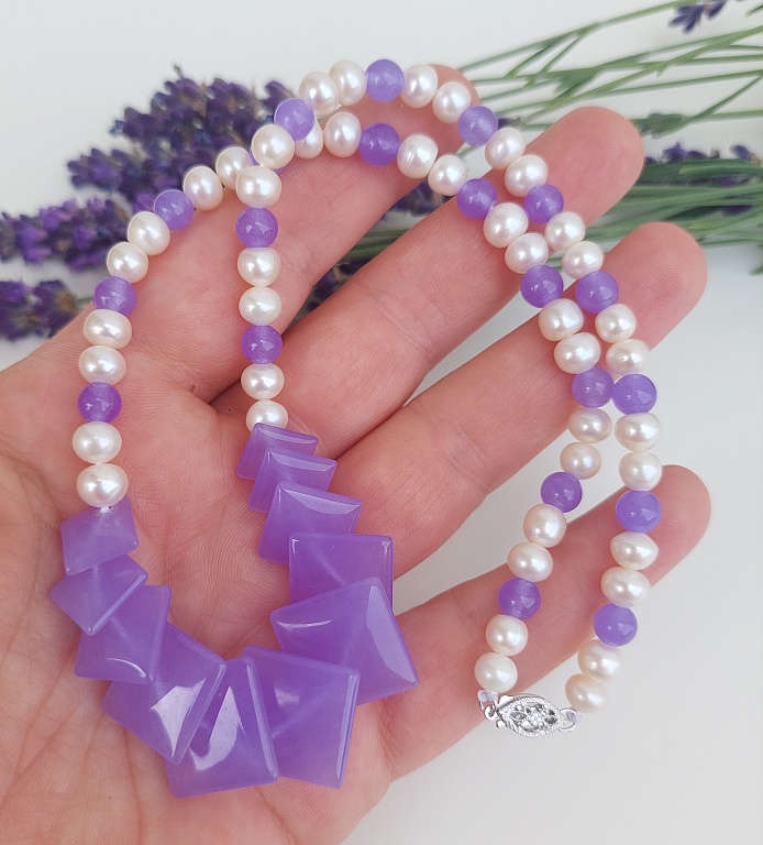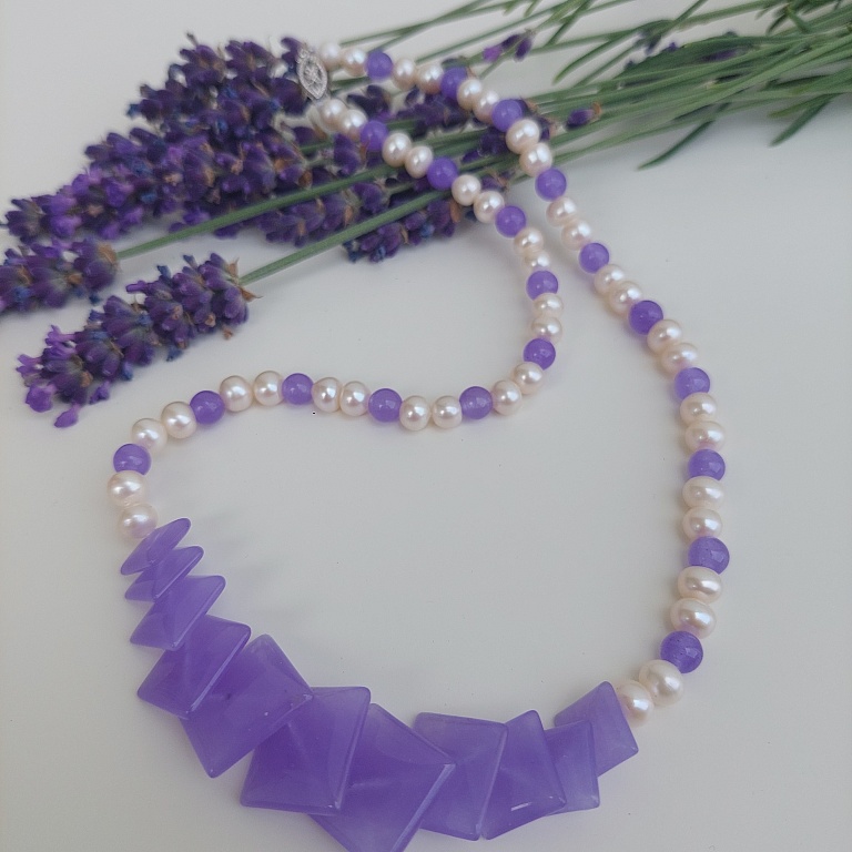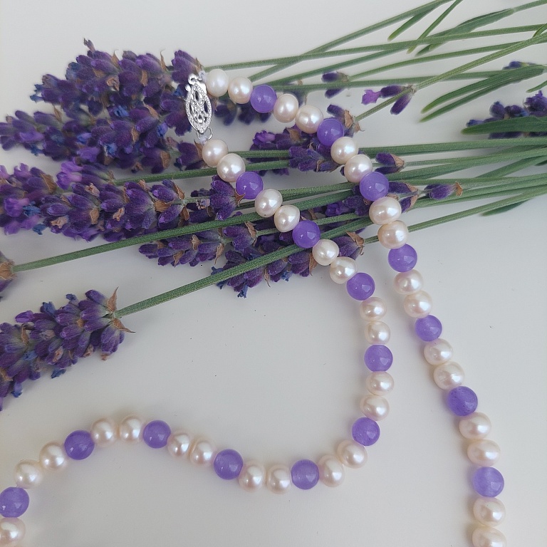 Helmedega kaelakee lillad heledad. tugev kuldne kinnitus.