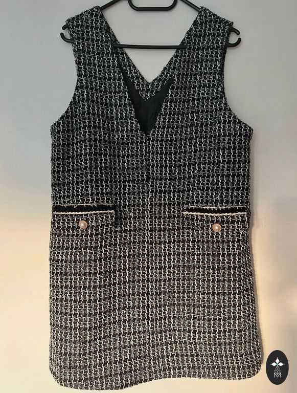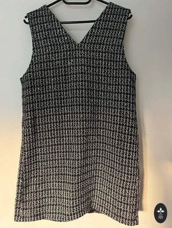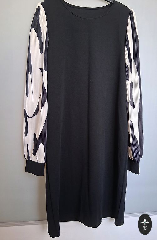 Shein kleita. Noradīts XL izmērs, bet ideāli uz L izmēru. Kleitas garums 91cm, padusēs platums 54cm, viduklī platums 38cm staipās līdz 54cm platumā.(istrādāta gumija)
