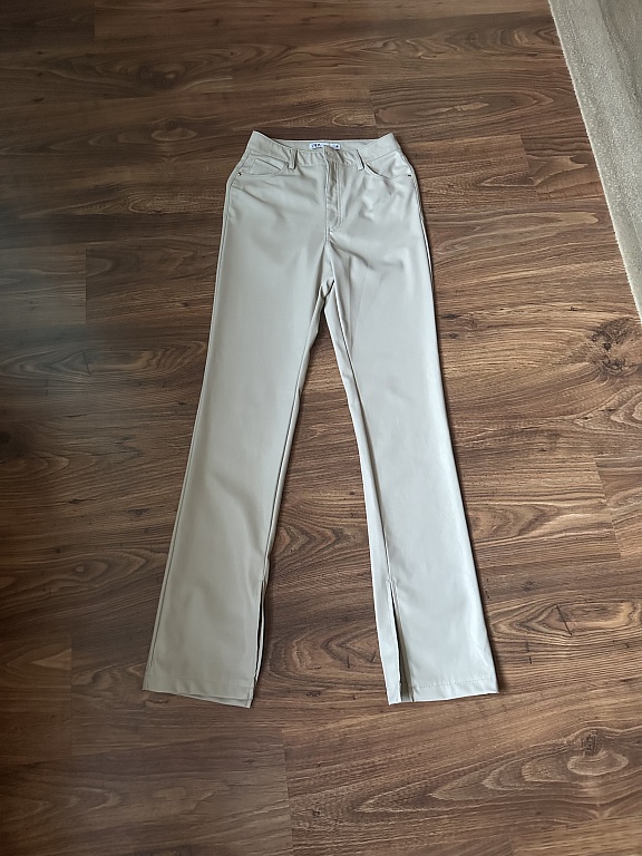 Pirktas šeit,bet kaut kā nesadraudzējos,tā bikses foršas un stilīgas,bet ne priekš manis,Viduklis 51cm.,gurni 61cm.,garums 107cm.,staras platums 34cm,foto no iepriekšējās saimnieces