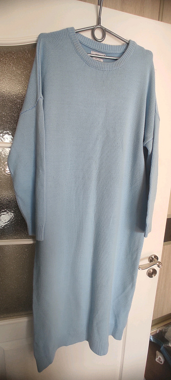 Elegant suit! The main color is light blue (the lighting differs in the pictures). Gorgeous, rich fabric in the skirt part, with lining, and an elastic insert at the back of the skirt. Can be worn as a set, looks like a dress, or separately. Includes a belt. New with tags. Size S/M. Skirt reaches the ground for 173cm height. Higher with heels.
