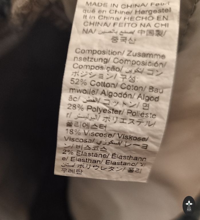 98% kokvilna, 1% poliesters, 1% viskoze