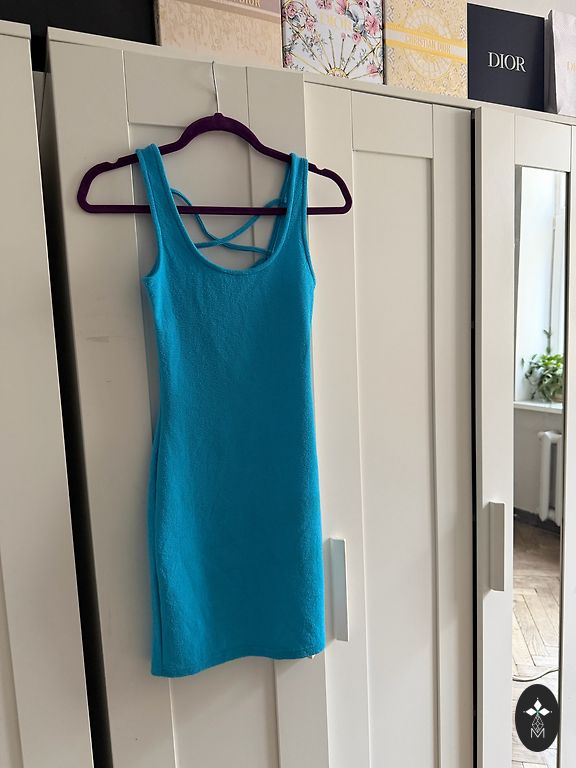Labai graži suknelė iš NOLO. Spalvų derinys ryškiai mėlyna + bronza + grafitas + juoda grafiniame dizaine atrodo įspūdingai, apačioje išsiuvinėta žvaigždė. Yra kišenės.
