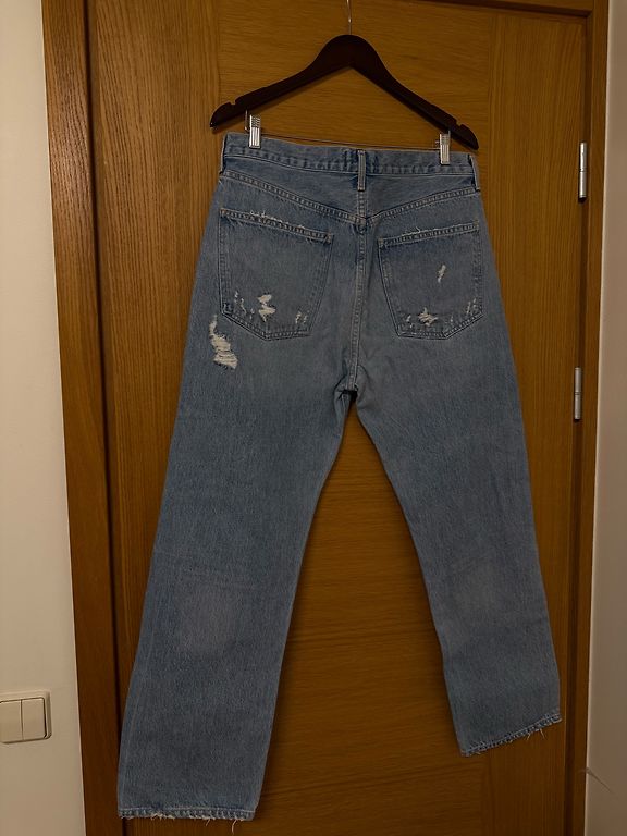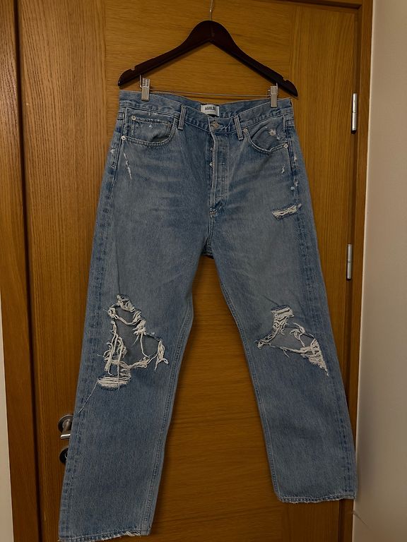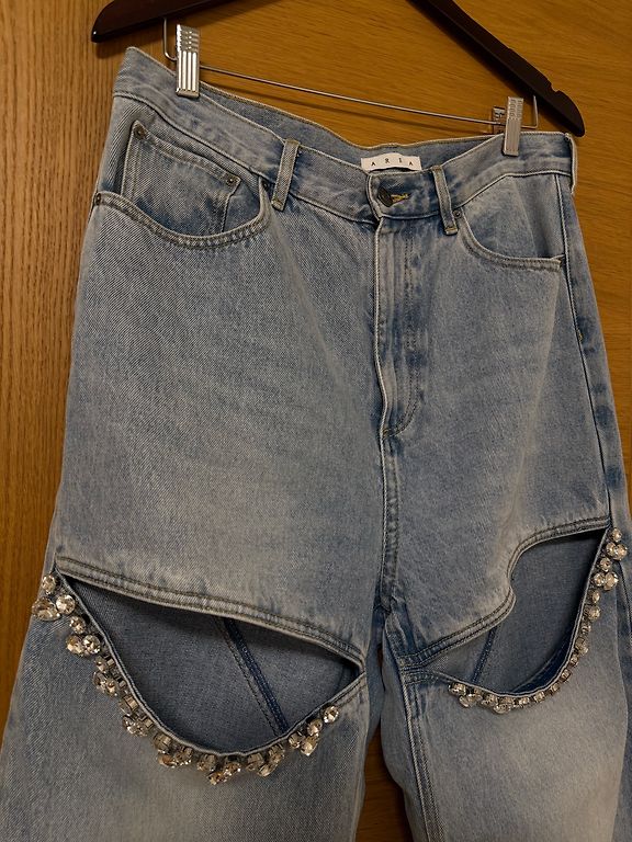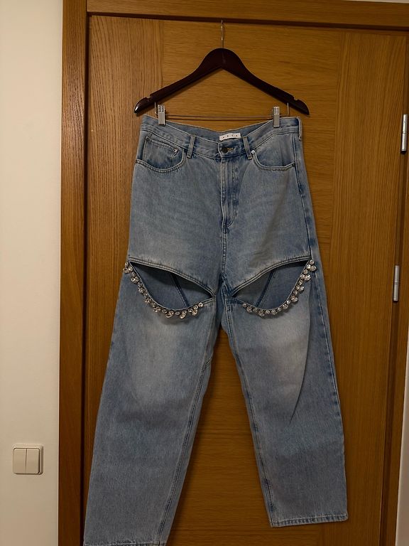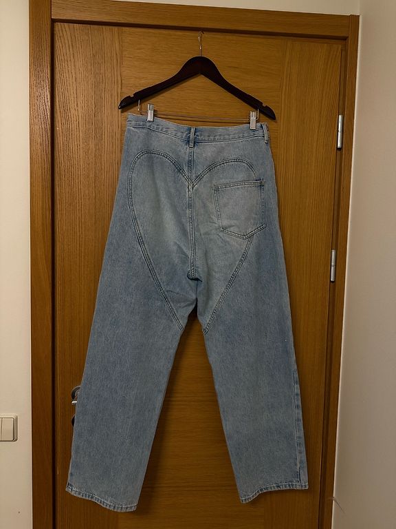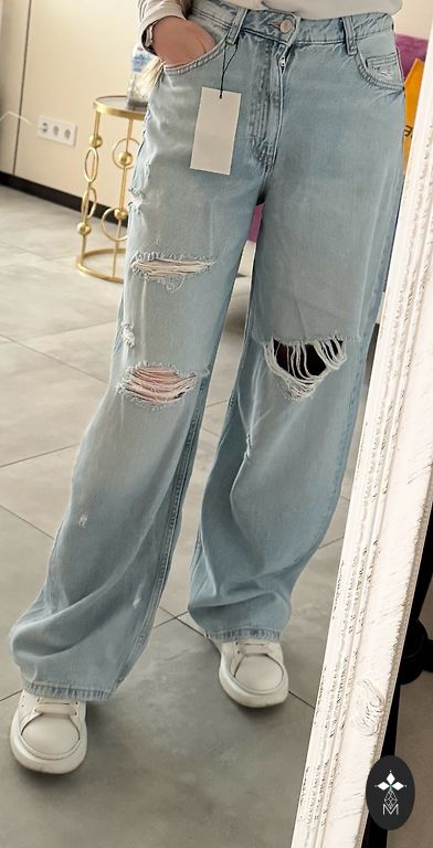 Extra platu staru un augstās jostasvietas džinsi.
