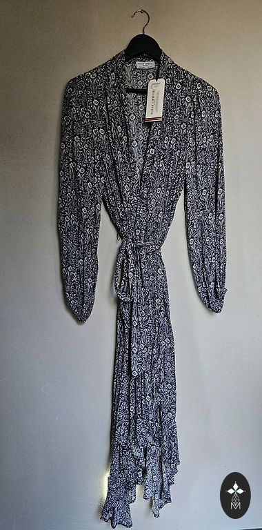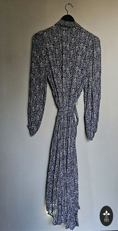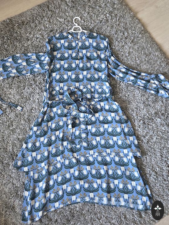 Облегающее платье из эластичного материала с ярким принтом. Состав - эластан + полиэстер. Длина - 106 см; обхват груди - 83 см; талия - 78 см; бедра - 102 см; рукава - 20 см; плечи - 39 см.
