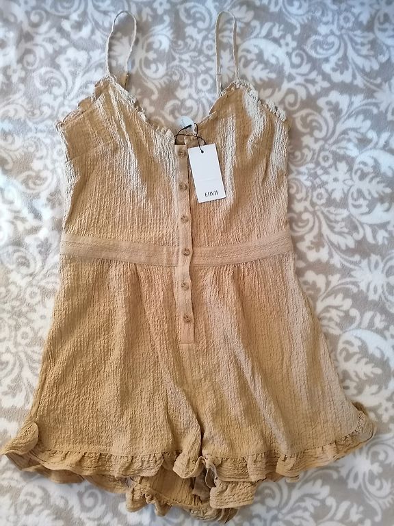 Graži kostiumas S-M dydžio, juosmuo su elastine juosta be ištempimo 68 cm ir ilgis 96 cm, krūtinės apimtis 100 cm ir ilgis 62 cm.
