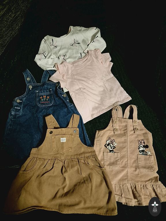 Bikses, melnais un bezrociņu krekls izmazgāti, bet nav vilkti. Pārējie mazlietoti.