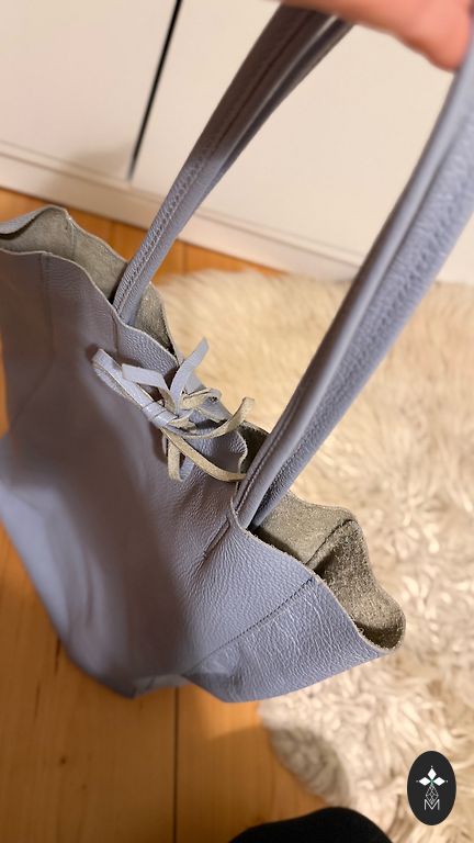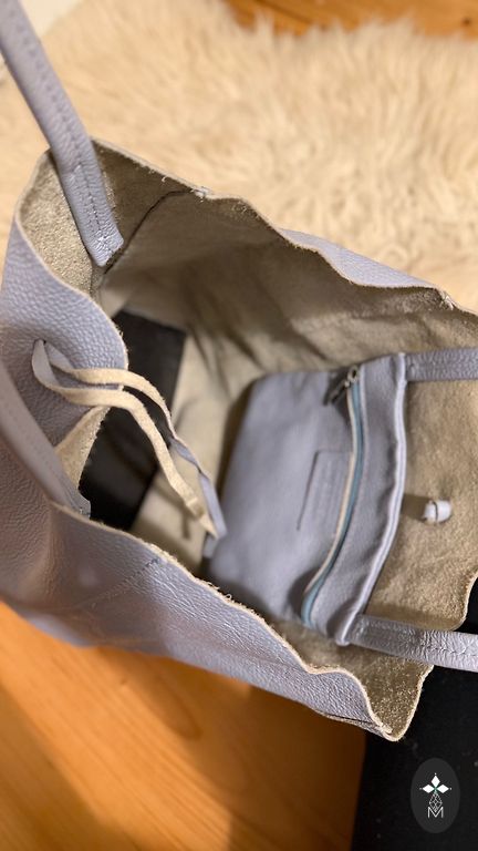 Īsta āda,ir arī pleca siksniņa,aiztaisāma ar rāvējslēdzi. Vienreiz izmantota. Bez defektiem.