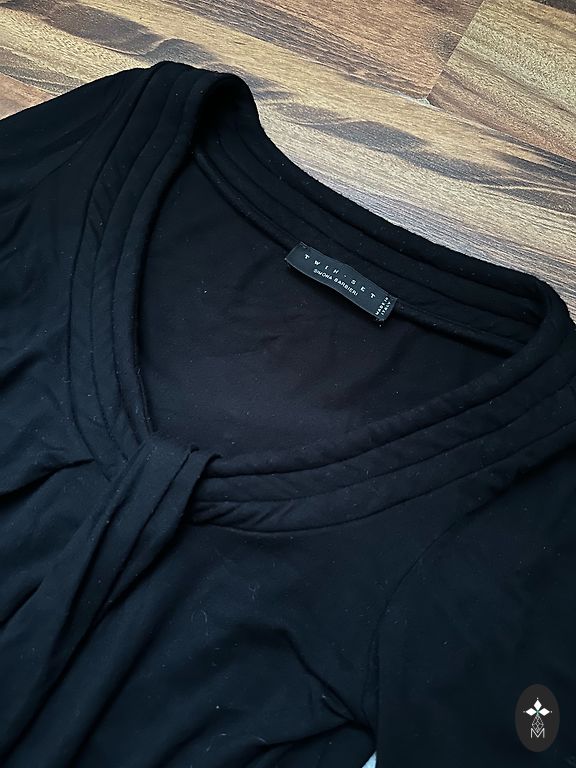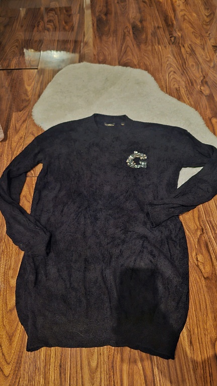 Tellimõmmeldud. Sametist flitterid. Rinnaümbermõõt 56 cm, pikkus 82 cm. Võib kanda mini kleidina või tuunikana kitsaste pükste või pliiatsseelikuga.