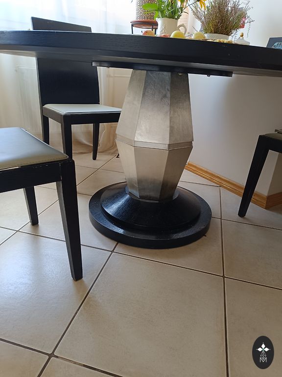 Koka galdi ar metāla kāju.