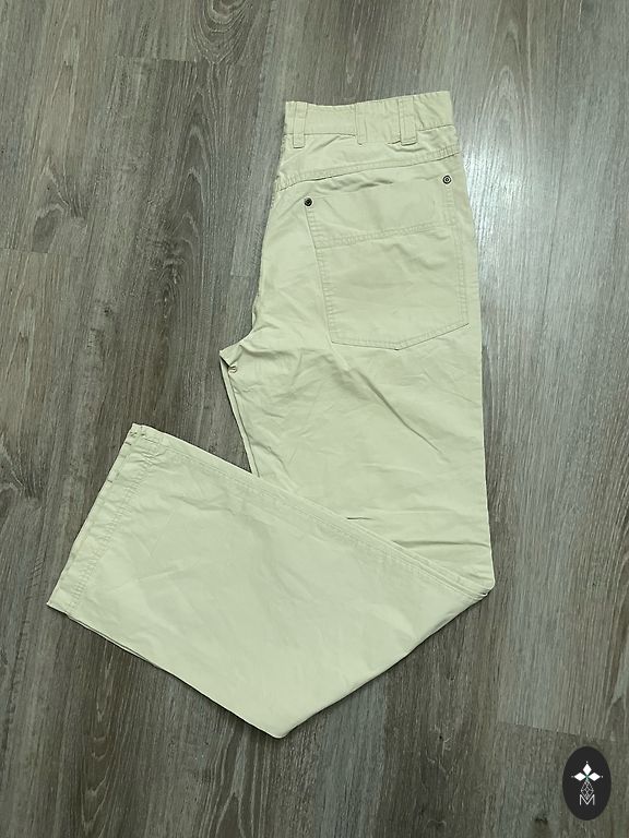 Pārdodu vieglas, ērtas kokvilnas -lina bikses ar regulējamu gumiju jostasvietā.Biksēm sānos ir kabatas, aizmugurē ir kabata.Materiāls ir nedaudz elastīgs.Viduklis ar neizstieptu gumiju 84 cm,ar izstieptu gumiju derēs līdz 106 cm, gurnos derēs līdz 126 cm, bikšu garums ir 100 cm, iekšējās vīles garums ir 68 cm, bikšu gali ir 20×2 cm, bikšu staras platums augšstilba resnākajā vietā ir 35×2cm.Sūtu uz pakomātu, klātienē netiekos, bildes uz auguma nefotografēju, pārdoto preci atpakaļ nepieņemu, sūtīšanas izmaksas sedz pircējs.