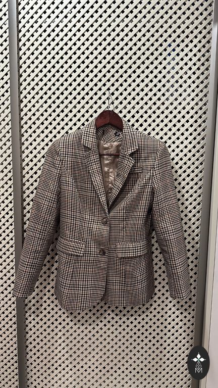 M izmēra oversize stila žakete/bomberjaka. Ārpusē tvīda tipa, aiztaisāma ar pogām
