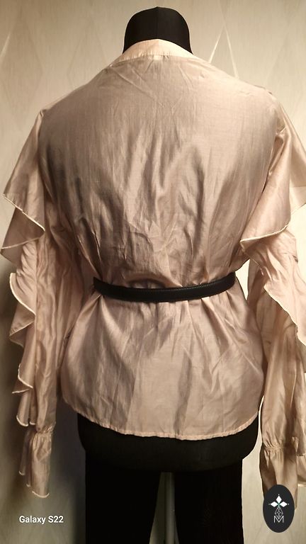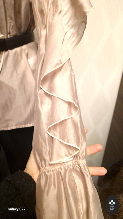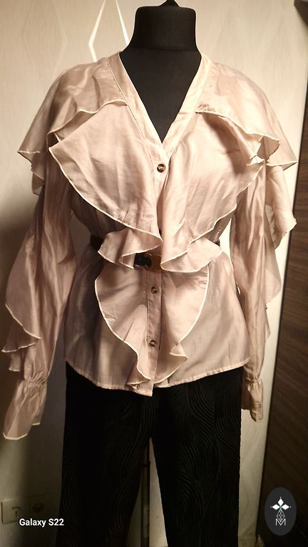 В ткани жакета минимальный блеск, который делает жакет праздничным и элегантным. Жакет не жесткий, приятный для тела, так как в составе есть хлопок.