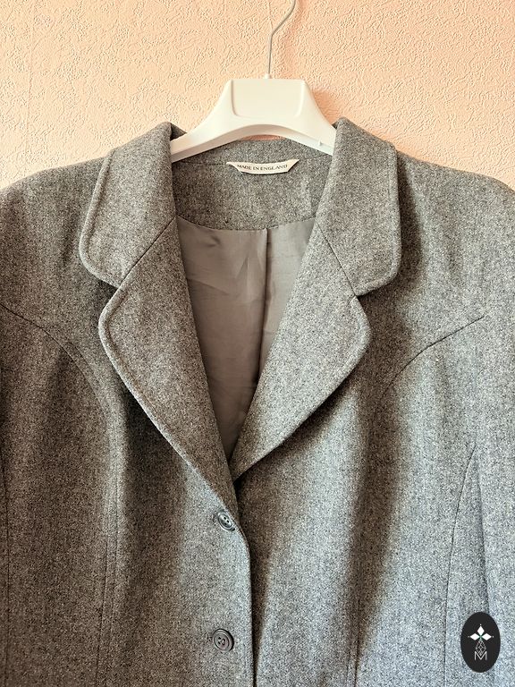 Žakete ar apdruku uz muguras un piedurknes.