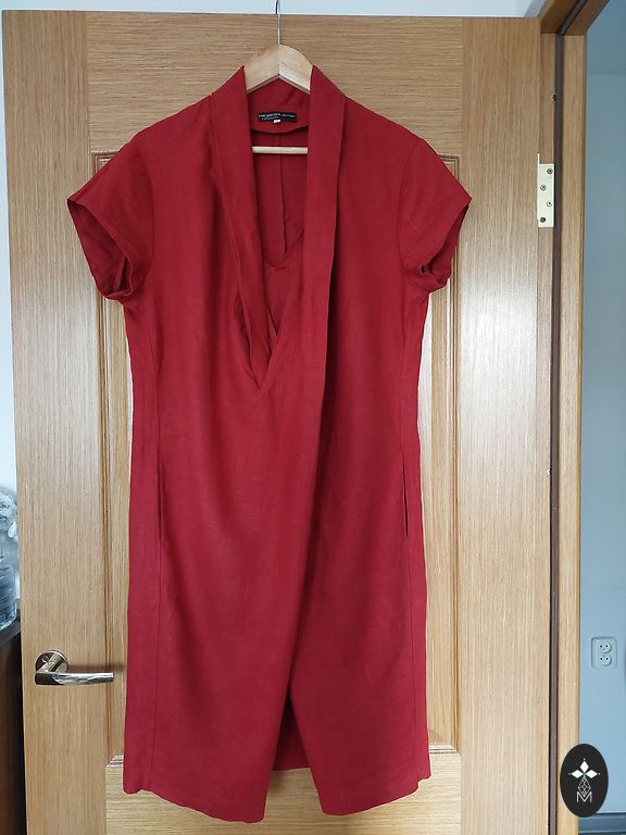 Ilus, kohev linane kleit, ostetud Austriast. Sobib suurusele M-L. Poolpikad varrukad, taskud, lõhikud, kvaliteetne, linane, detailid, siduv vöö, sebramuster.