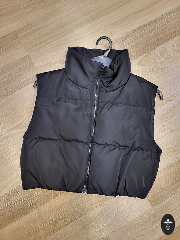 Šilta, ilga liemenė. Dydis nurodytas S. Abiejose pusėse užtrauktukai. Gobtuvas nuimamas su užtrauktuku. NEREZERVUOJU! ❌