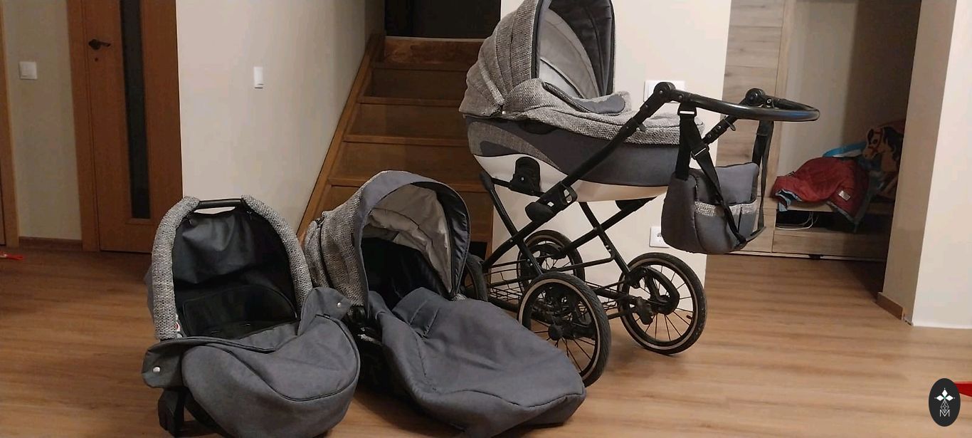 Pārdodam bērnu ratus 2in1 pēc viena bērna. Ir lietošanas pazīmes, skrāpējumi uz rāmja, vietām smērējumi.Komplēktā iet soma, lietus plēve, moskītu tīkls, cimdi rokturim.
