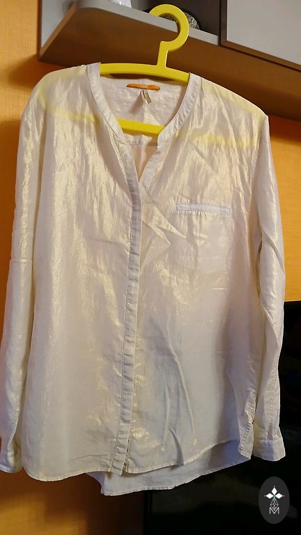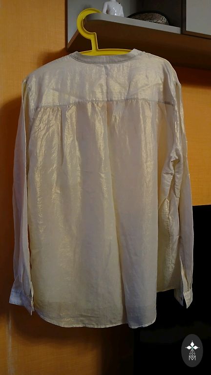 16 dydžio lininių marškinių palaidinė su užapvalintais skeltukais šonuose, su pusilgėmis rankovėmis. Matmenys: ilgis nuo peties - 83; krūtinės apimtis - 56x2; rankovės ilgis - 48; pečių linija - 43. + Omniva