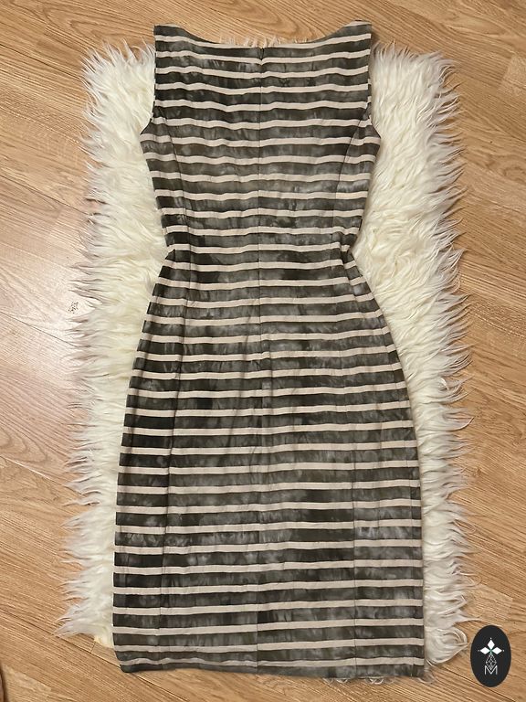The dress has been worn once.! It is marked M, but it will fit both S and M sizes. It fits me perfectly. Very soft and very comfortable. Breathable.