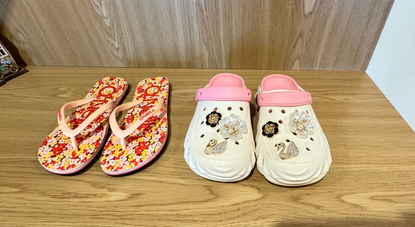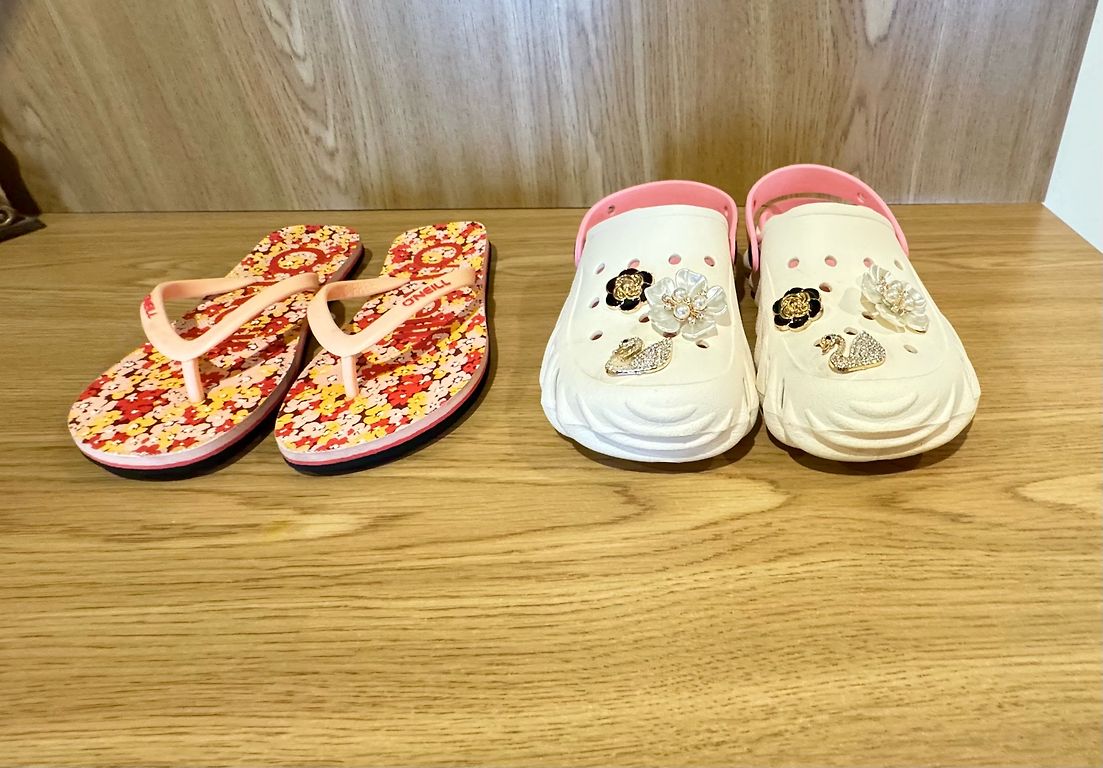 Crocs sandals.