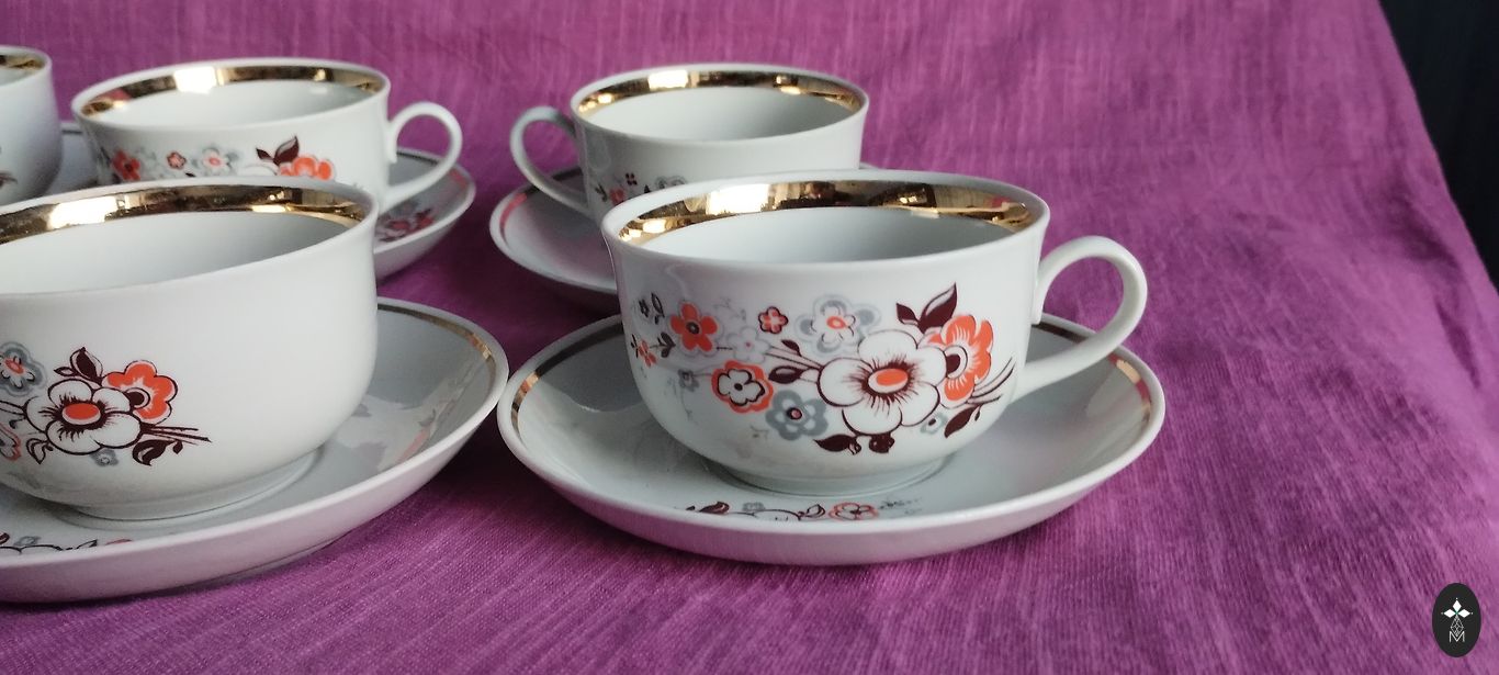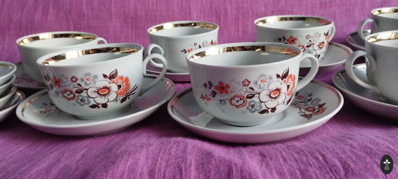 Keskne nõud: kohvikann (2 l), koorekann ja suhkrunõu. 4 kohvi duo. Kasutamise märke pole.