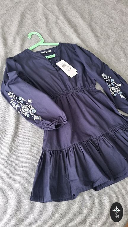 Labā stāvoklī tumši zila svētku kleita, izmērs 134
