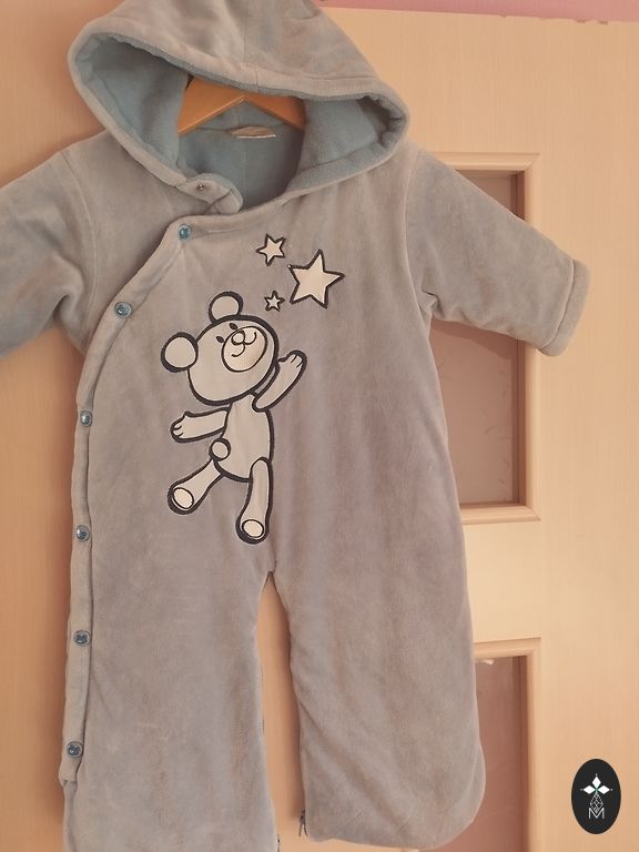 Šiltintas, minkštas kombinezonas, patogiai apsirengti, nuo 3 mėnesių. Tinka tiek berniukui, tiek mergaitei. Idealios būklės, po vieno vaiko.