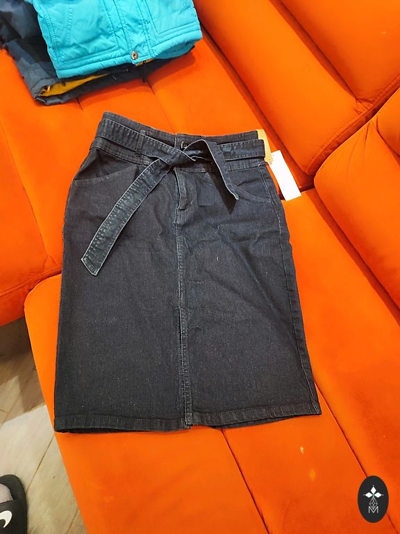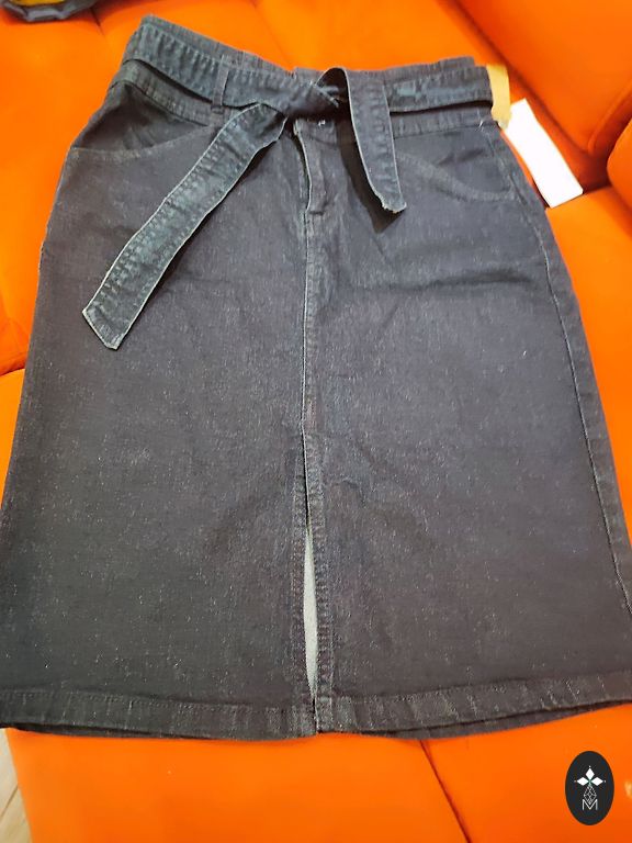 Mid-length, fitted denim skirt